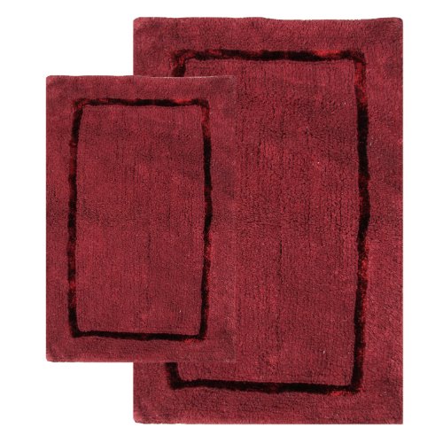 Beautiful cotton and rayon bath rug compliments any bathroom. Set of 2 bath rugs includes one 21-inchx34-inch and one 17-inchx24-inch. Machine Tufted. Spray latex backing.
