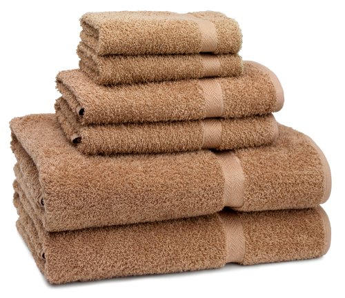 Update the colour scheme of the family bathroom by adding these simple but durable towels. This is the ideal family towel. Made of 100-percent ring spun cotton gives the towel softness and absorbency but the lighter construction results in less time needed in the dryer therefore saving time and energy costs. The woven side selvages and lock stitched end hems add durability to the towel. This towel has been proudly made in Canada for 25-year. The set consists of 2 bath towels 27-inch by 52-inch, 2 hand towels 16-inch by 28-inch and 2 face clothes 13-inch by 13-inch. Available in White, Mushroom, Blue Atoll, Granite, Black and Pink Amethyst.