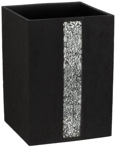 The crack glass band down the center of each item on a black background. This Elite design is a beautiful, chic, fun, update for your modern bathroom. Coordinates with our matching bath accessories, rug, towel set and shower curtain. Item is hand wash only. Made in China