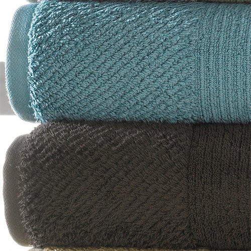 The set contained six towels - 2 Bath Towels, 2 Hand Towels, 2 Wash Cloths. The bath towels are 53" x 28", the hand towels are 26" x 17" and the wash cloths are 12" x 12". Both the bath towels and the hand towels had hanging loops stitched into the end panels, which I thought was a nice touch. I've never had a set of towels that had that before.