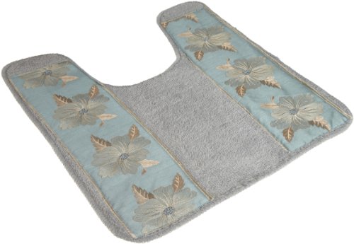 Complete your bathroom decor with our matching Contour Rug. Our contour is Silver Blue color with Flower Blossom band design sewn onto it.