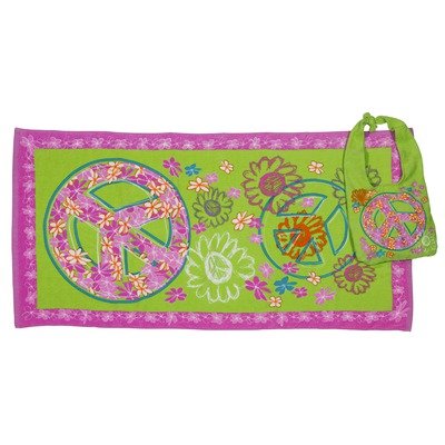 Chillaxin with your BFFs. Enjoy some summer fun with this peace sign towel set Features 100-Percent terry hobo style bag and full-sized beach towel with Hibiscus Peace motif. Bag is 12-1/2-inch by 12-1/2-inch and towel is 30-inch by 60-inch.
