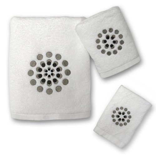 Prito 100-percent cotton 3-piece embellished towel set adds art deco floral fun to any bathroom. Set comes with a 30-inch by 52-inch bath towel, a 16-inch by 30-inch hand towel and a 13-inch by 13-inch wash cloth.