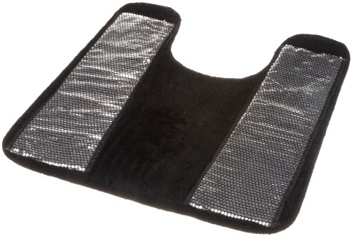 Rhinestone boarder on a white contour complete the bathroom. Coordinates with our matching bath accessories, towel set and shower curtain. Item is machine wash cold. Hang to Dry. Diamond Rubber backing. Acrylic Material. Rug Color: Black